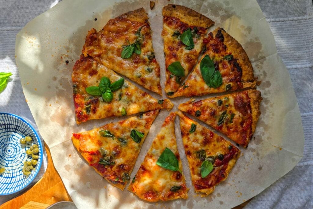 Make a Napoli-inspired piadina pizza with quick marinara, mozzarella, capers, and basil. Crisp edges, soft middle, ready in about 15 minutes.