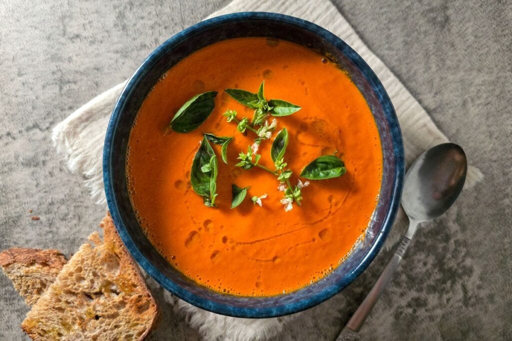 This Tomato Soup in Soup Maker is a simple roast–blend–heat method that delivers deep flavor with minimal effort and a boost for your gut microbes.